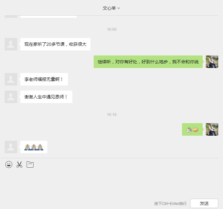 | 四川一家长,禀性深厚,在李老师循循善诱下,反复聆听家和子贵系列课程。终顿悟,明白了怎样去做人,蜕变了自己,不但与邻里相处融洽,而且与亲朋好友都和睦相处,从此自己... |